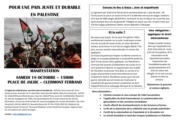 POUR UNE PAIX JUSTE ET DURABLE EN PALESTINE